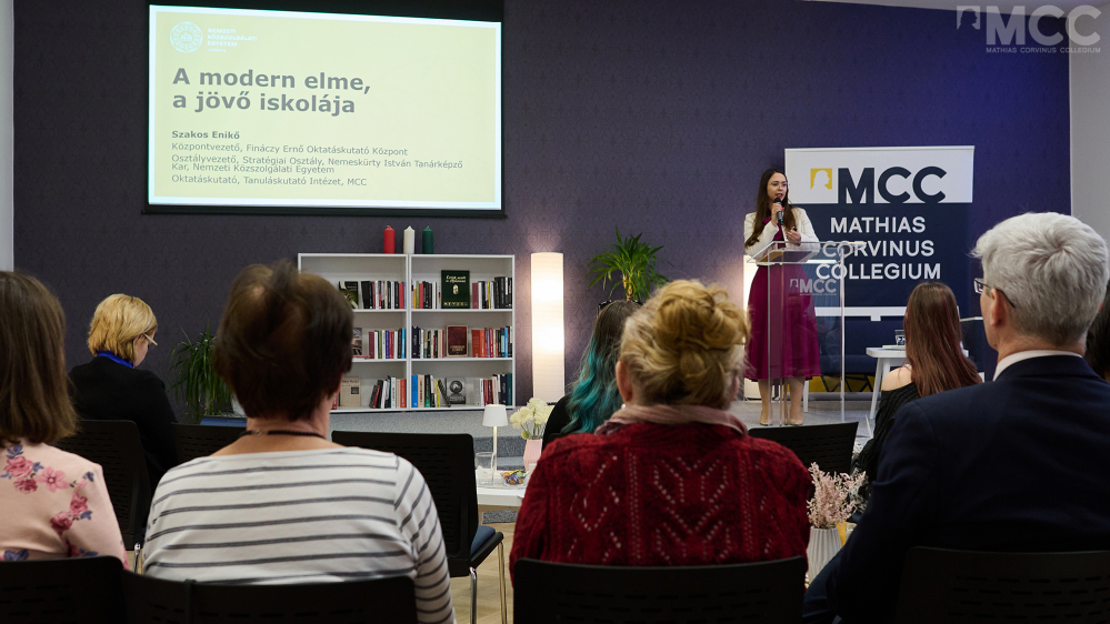 Ez a kérdéskör állt annak az előadásnak a középpontjában, amelyre a megújult Mathias Corvinus Collegium nyíregyházi központjában került sor. Különleges megtiszteltetés volt, hogy az intézmény új tereiben első előadóként nyílhatott lehetőség Szakos Enikő oktatáskutatónknak a téma kibontására.