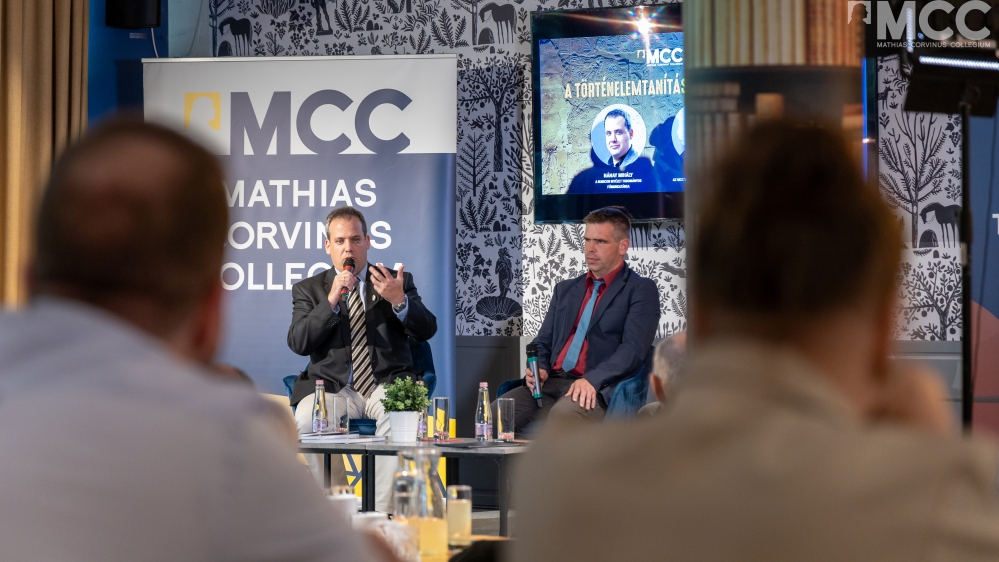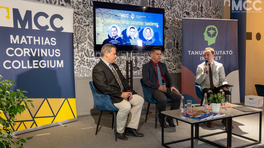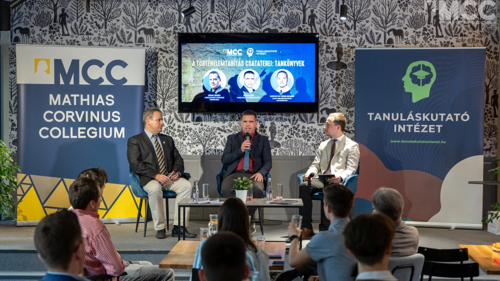 Június 14-én tartották az MCC Tas vezér utcai épületében a Tanuláskutató Intézet szervezésében A történelemtanítás csataterei: tankönyvek című pódiumbeszélgetést, melyen Dr. Nánay Mihály földrajz és történelemszakos tanár, az Oktatási Hivatal tananyagfejlesztő, tankönyvíró és szakértő munkatársa, a Történelemoktatók Szakmai Egyesületének elnöke, valamint Dr. Kovács Örs francia és történelemszakos pedagógus, az MCC vezető oktatója, Történelemoktatók Szakmai Egyesületének gimnáziumi tagozatvezetője, a Szent Imre Katolikus Tankönyvcsalád történelemtankönyveinek főszerkesztője vett részt, Fodor Richárd, a Tanuláskutató Intézet kutatásvezetőjének moderálása mellett.