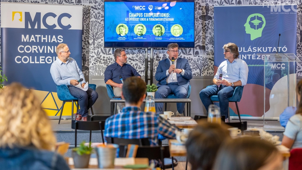 Dr. Schreck Ákos nyitotta meg az eseményt és bemutatta a Campus Cooperationis fő elemeit, majd egy szakmai beszélgetés következett, ahol kiemelte hogy hogyan lehet az adaptív tervezéssel és az építészeti megoldásokkal támogatni a tudásátadást a változó igényekhez és technológiai fejlődéshez alkalmazkodva. Emellett hangsúlyozta a tudásterek tervezésének átalakításának és fejlesztésének fontosságát annak érdekében, hogy még hatékonyabban támogassák a tanulást, a kutatást és az együttműködést.