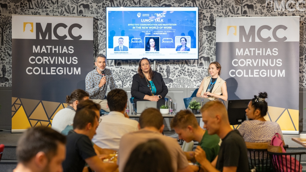 Orna Kopolovich Bar, a Holon Institute of Technology (HIT) Tárgyalásmenedzsment és Üzleti Innováció Központjának vezetője – aki a Harvardon tanult tárgyalás technikát és már több éve vezető oktató, mediátor és tárgyalási menedzsment kutató – a Tanuláskutató Intézet meghívására látogatott el 2023. augusztus 29-én az MCC-be