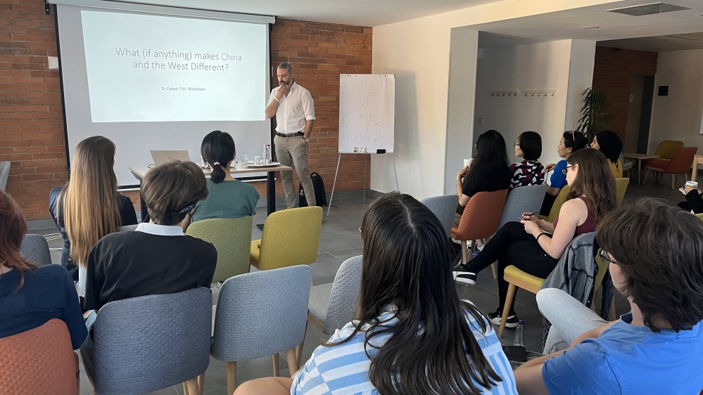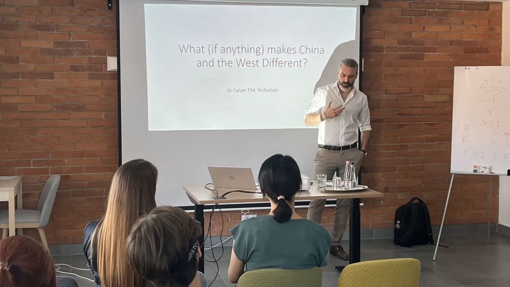A szombati nap további izgalmas előadásokkal folytatódott. Vendégünk volt Calum T. Nicholson, aki a Cambridge-i Egyetemen tanult és az Oxfordi Egyetemen MPhil fokozatot szerzett, majd PhD-t, egy előadást tartott "What, if anything, makes China and the west different?" címmel. Kérdéseket vetett fel arról, mi teszi Kínát és a nyugati világot különbözővé.