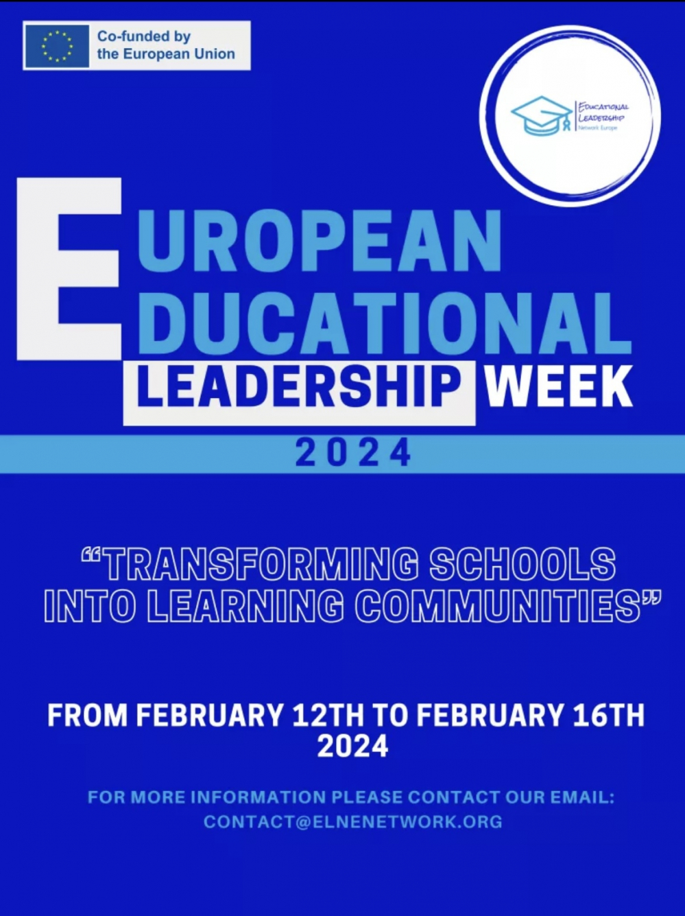 Az Európai Oktatási Vezetői Hét (The European Educational Leadership Week), amely az Európai Oktatási Vezetői Hálózat (Educational Leadership Network Europe - ELNE) kulcsfontosságú kezdeményezése, egy egyhetes online fórum, amely több tucat dinamikus és innovatív webináriumból áll. Célja, hogy bemutassa az ELNE tagjainak az együttműködésén alapuló vezetéssel kapcsolatos munkáját, valamint olyan innovatív oktatási kezdeményezéseket, amelyek példaértékkel szolgálhatnak más európai oktatási rendszerekben is.