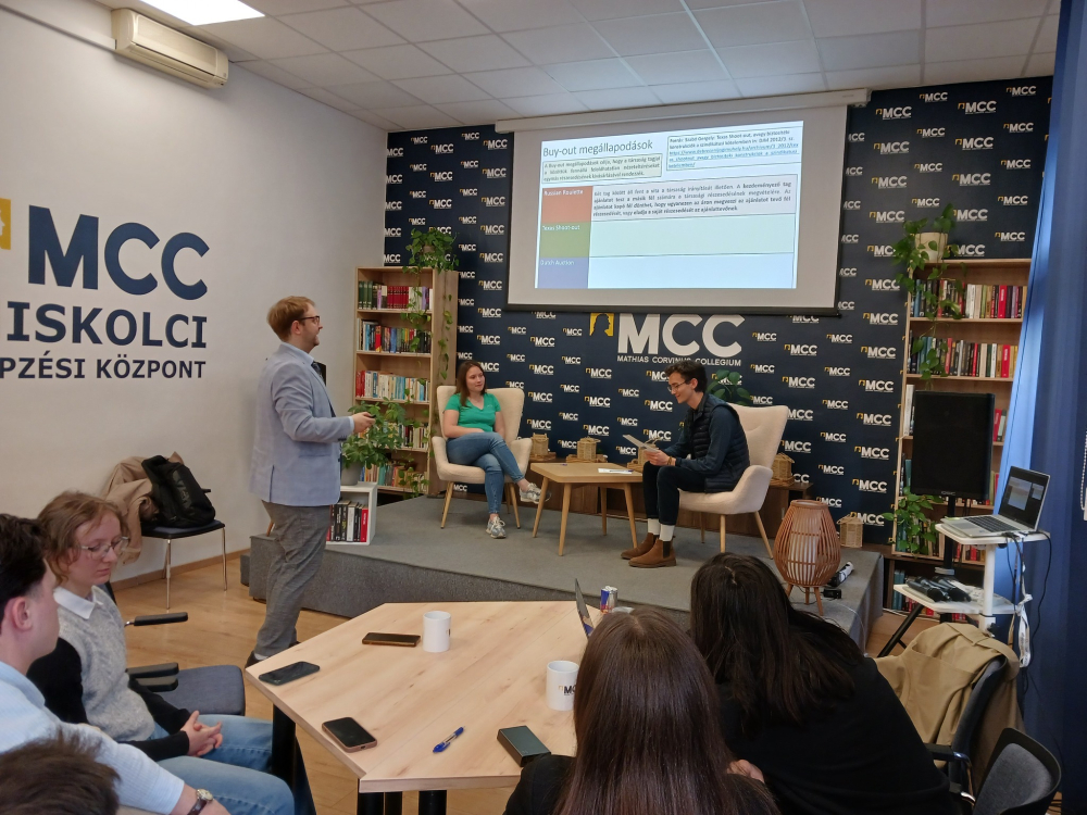 Dr. Stipkovits Tamás Akadémiai forradalmak és az egyetemi innovációk szabályozása című előadása az egyetemek, a tudományos fejlődés és az innováció kapcsolatát állította középpontba. Az előadás során a hallgatók különféle jogi vitahelyzetekben is kipróbálhatták magukat.