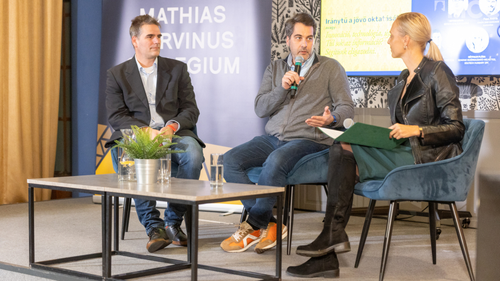 Ezután következett a kerekasztal beszélgetés. Koren Balázs - EdTech Koalíció szakmai vezetője, az MCC FIT és KP robotika kurzus oktatója szerint, fontos, hogy az oktatás kövesse a diákok virtuális térbeli és szociális szokásait, és a tananyagok alkalmazkodjanak az új technológiákhoz. A folyamatos változások, multimédiás tartalmak és képi elemek átalakítják a tanulási szokásokat. A digitális transzformáció hatására a tanulók szerepe és szocializációs környezete is változik. Az interaktív tanulási környezetek és az egyedi szükségletek figyelembevétele kulcsfontosságú az oktatás hatékonysága érdekében. Rámutatott arra, hogy a mesterséges intelligencia lehetőséget teremt a személyre szabott tanulásra, ahol a diákok saját tempójukban haladhatnak, és a tanár a személyes fejlődésükre koncentrálhat.
