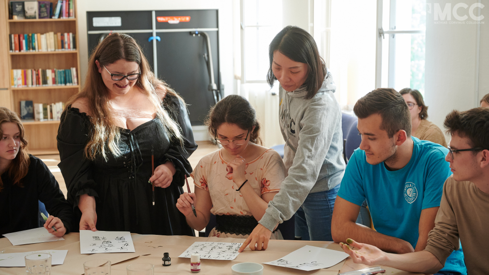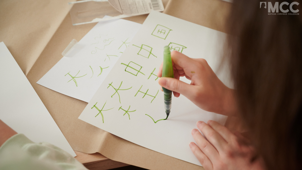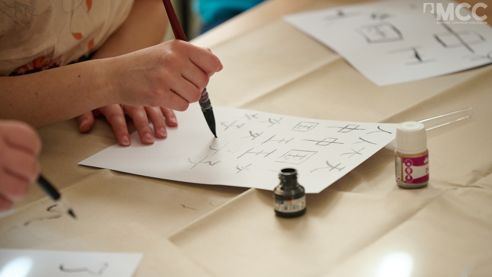 A kínai kalligráfia és az írásjelek mögöttes tartalma azonban nem csak elméletben, hanem gyakorlatban is megjelent a klubdélutánon. Kiderült, hogy kínai ecsetet fogni nem is olyan egyszerű, a jelek megformálása pedig nagy odafigyelést és aprólékos munkát igényel. Rövid gyakorlás után két diák írását emelte ki Fan Mizi, akik kisebb jutalomban is részesültek.
