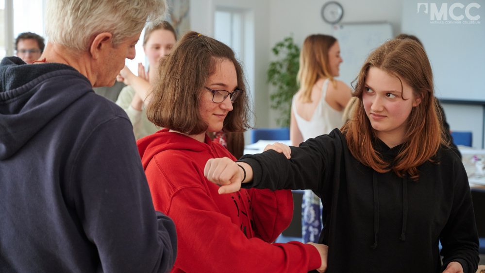 A keleti gondolkodás és életszemlélet megértéséhez elengedhetetlen, hogy az ázsiai harcművészetek egyikébe is belekóstoljunk, így a gyorstalpaló kínai nyelvóra után, a diákokat átmozgató tai chi bemutató következett. Az európai mozgásformától teljesen eltérő mozdulatok nem csak a testi egészség, hanem a lelki egyensúly megóvásában is nagy szerepet játszanak a Távol-Keleten.