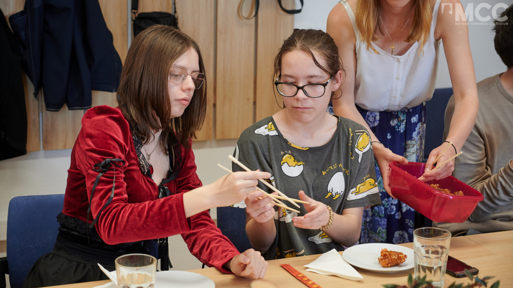 Kostólót azonban nem csak a harcművészetekből vettek a diákok, hanem a kínai konyhából is. A pálcikával evés mesterségét elsajátítva egy házi bajnokságon is részt vettek. Mogyorót enni pálcikával felettébb szórakoztató és igen nehéz kihívás, de a középiskolások jól vették az akadályokat.