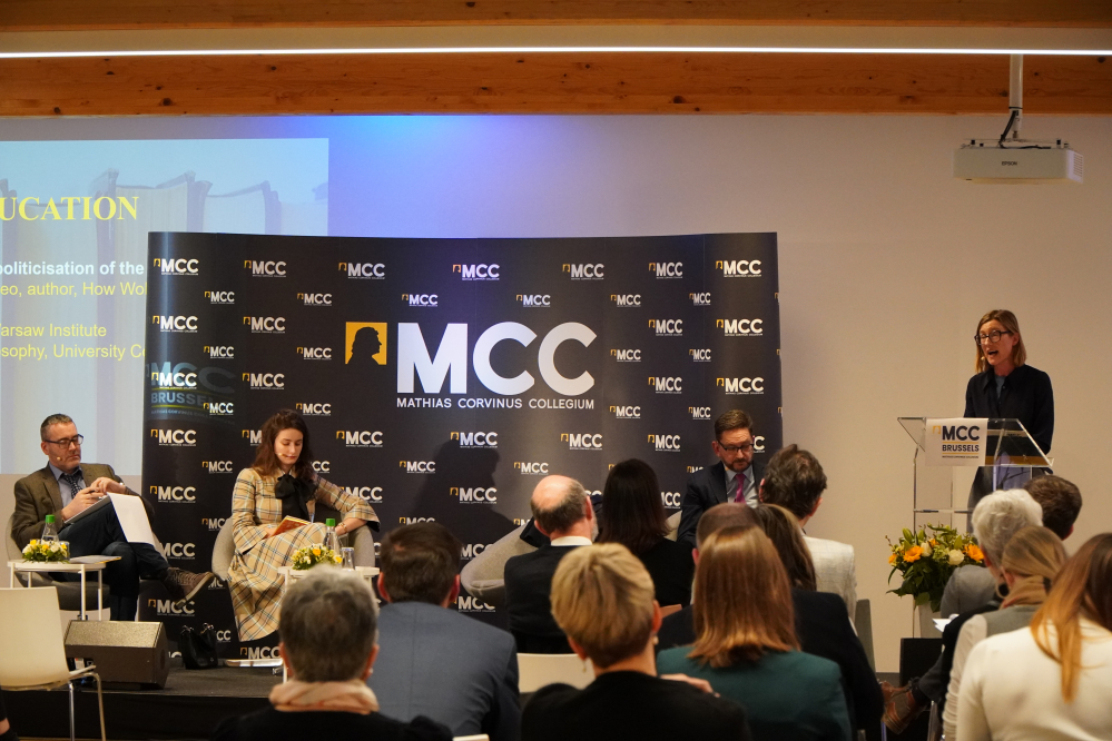 Jacob Reynolds, az MCC Brussels szakpolitikai vezetője betekintést adott Hannah Arendt oktatási gondolataiba, és részletesen kifejtette a felelősség és a tekintély kérdéseit. Reynolds kiemelte a tanár, mint az emberiség nagykövetének fontosságát, ezért hitének őszintének kell lennie ahhoz, hogy felelősséget vállaljon a diákok felé közvetített értékekért.