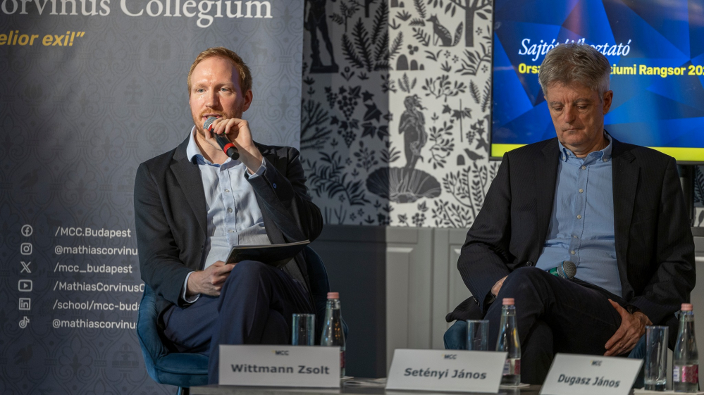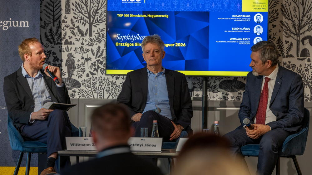 Október 22-én az MCC budapesti központjában tartott sajtótájékoztatón mutatták be a 2026-os Országos Gimnáziumi Rangsor módszertani megújulását. A rendezvényen Dugasz János, az Oktatási Hivatal főosztályvezetője, Setényi János, az MCC Tanuláskutató Intézetének igazgatója és Wittmann Zsolt, az MCC középiskolai rangsorért felelős vezetője ismertették a fejlesztések irányait és az új szempontokat, amelyek a korábbinál átfogóbb képet nyújtanak a magyar középiskolákról.